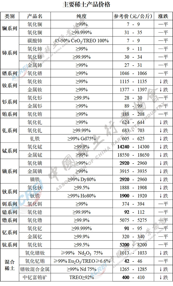 2022年03月18日主要稀土產品價格